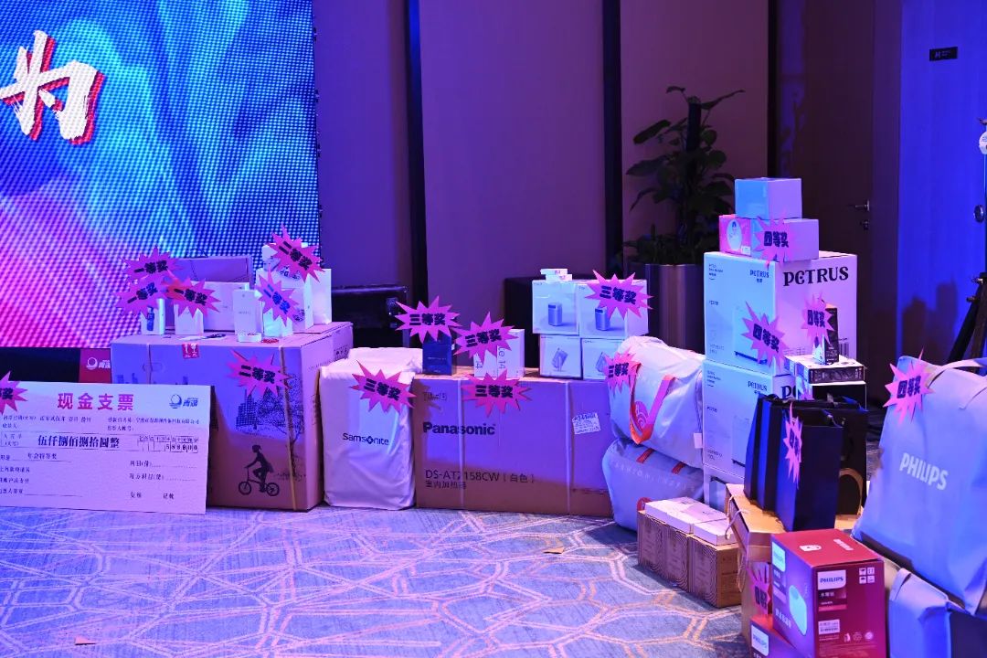 年會(huì)的抽獎(jiǎng)環(huán)節(jié)是最令人期待的。幸運(yùn)兒們歡聲笑語,獲獎(jiǎng)的喜悅洋溢在每個(gè)人的臉上。